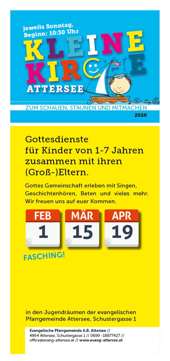 Zur „Kleinen Kirche“ sind alle Mütter, Väter, Geschwister, Omas, Opas, Tanten, Onkel... eingeladen, die Lust haben mit ihren Sprösslingen (von 1 bis ca. 7 Jahren) Gemeinschaft mit Gott und miteinander zu erleben. Wir singen, hören Geschichten, Beten und vieles mehr und wir freuen uns auf euer Kommen.